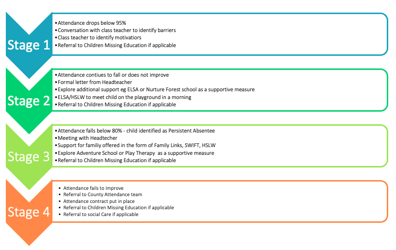 Regular attendance at school is one of the most important factors in helping children succeed. At St Michael's, we believe that every school day counts, as it gives pupils the opportunity to learn, grow in confidence, build friendships and develop good habits for the future. By working closely with parents and carers to promote excellent attendance and punctuality, we ensure that all our children are given the best possible start to their education and are supported to achieve their full potential.